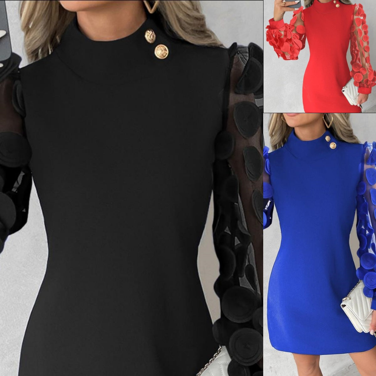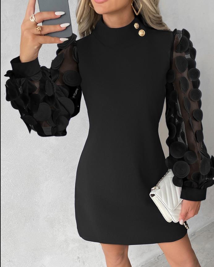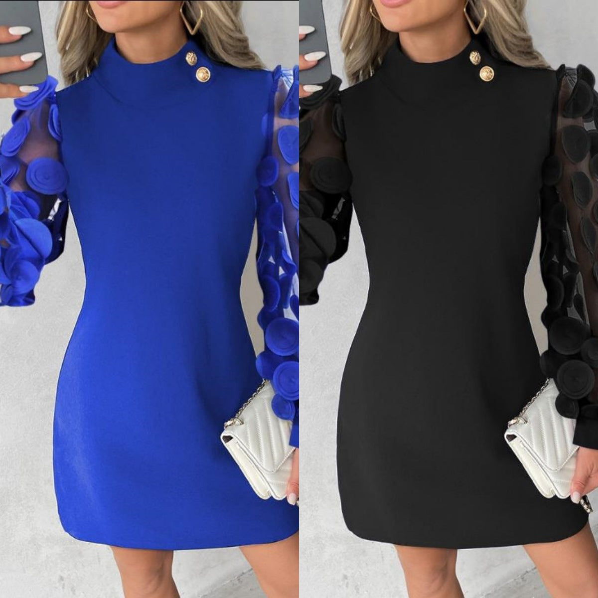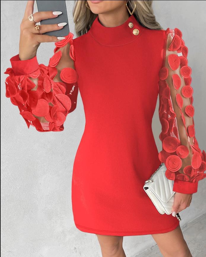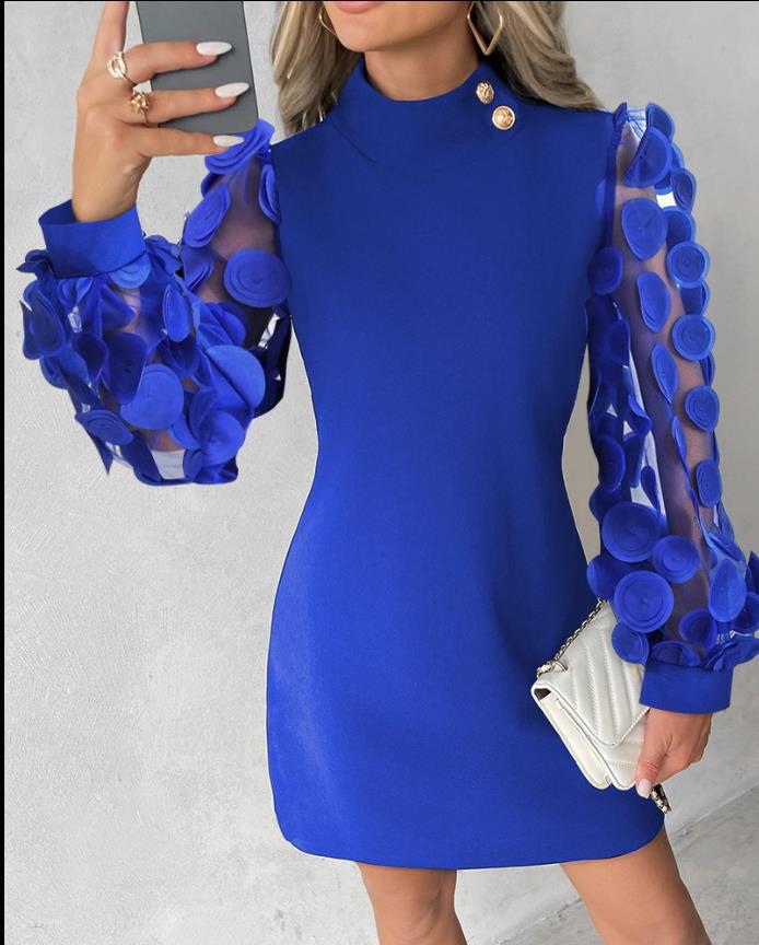 🌺Čipkasta obleka z okroglim izrezom in dolgimi rokavi, ki sega do pasu