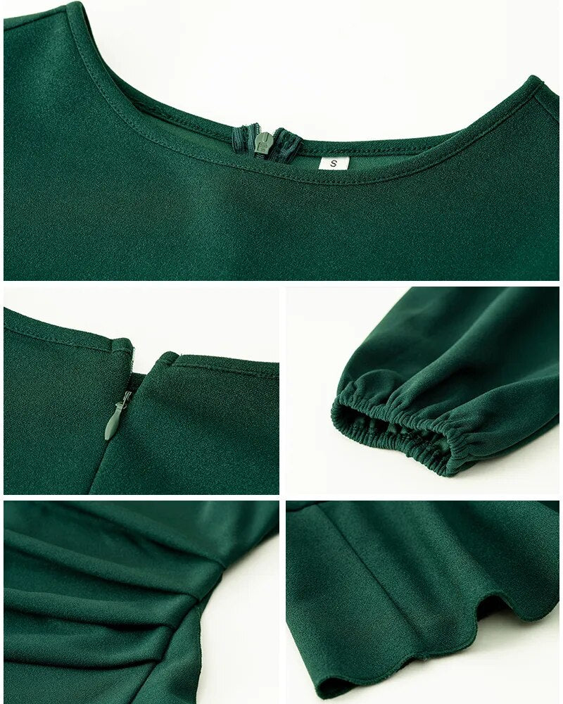 Sukienka w jednolitym kolorze z bufiastymi rękawami, o romantycznym i miękkim kroju, dzięki której możesz emanować kobiecą elegancją przy różnych okazjach! 🌸👗