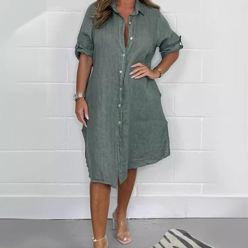 Pakiet zawiera : 1 * Damska sukienka koszulowa z bawełny i lnu zapinana na guziki