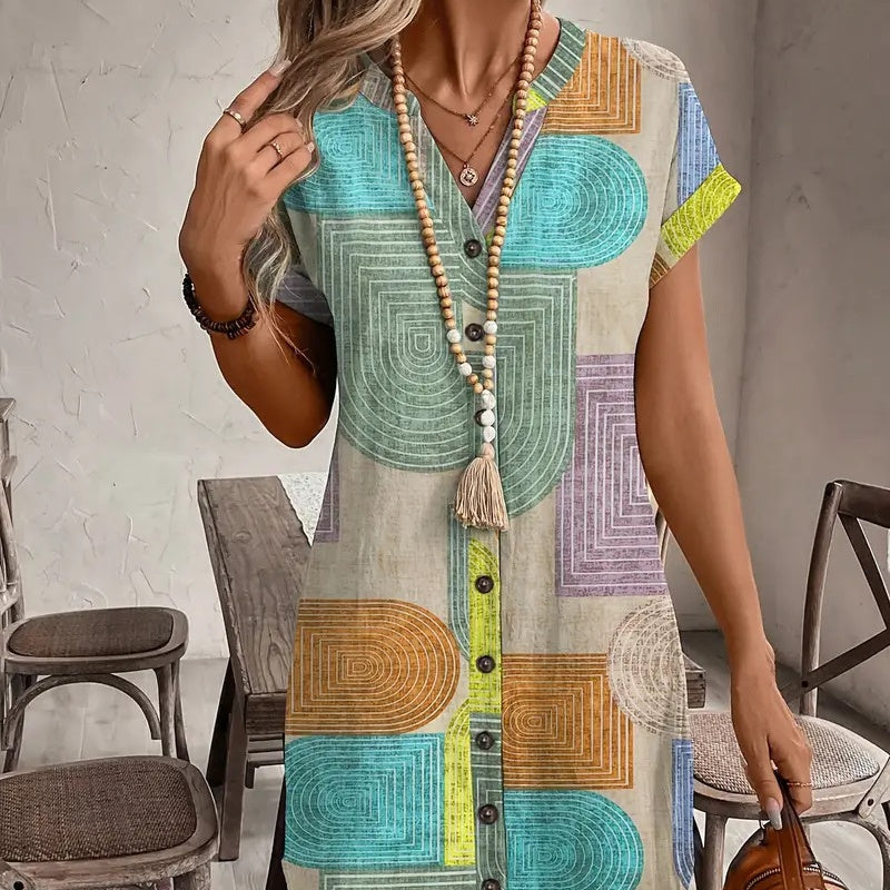 Niezależna wszechstronność - Ubierz go na zwężane obcasy igły do otwierania galerii lub sandały na elegancki brunch. Druk graficzny na drodze ukrywa zmarszczki, więc jest idealny na spontaniczną przygodę lub eleganckie przejścia z biura na wieczór.