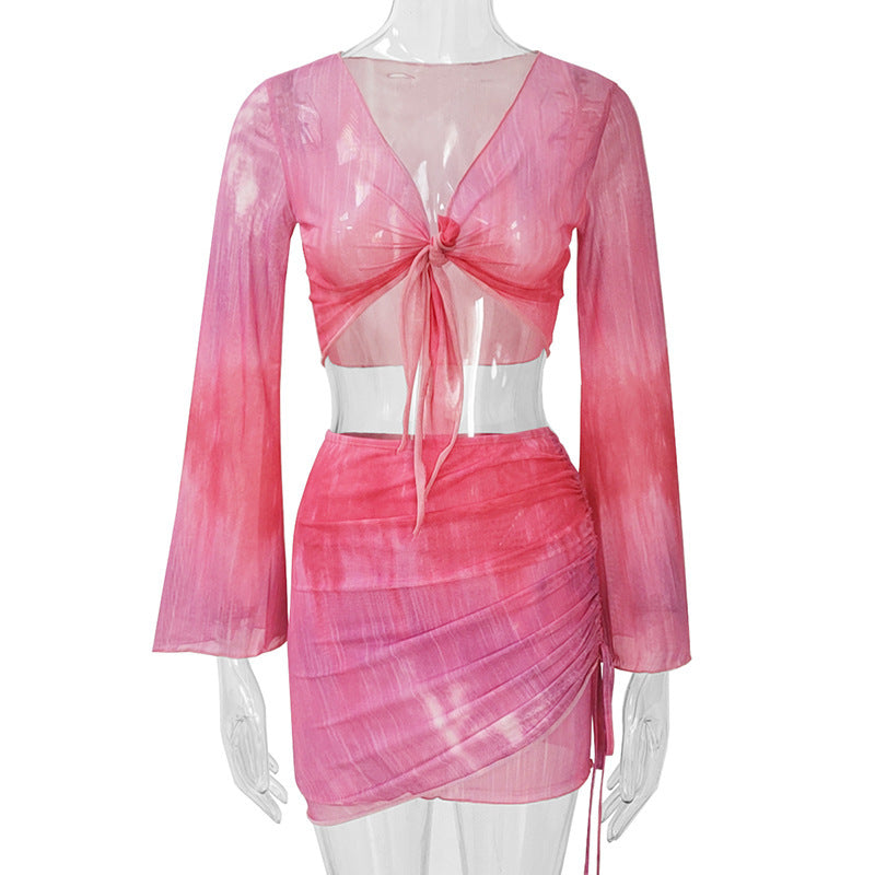 Letni dwuczęściowy garnitur ze spódnicą, idealny na lato, na niezobowiązujące wyjścia, do barów, klubów, na wakacje, podróże, zakupy, do noszenia na co dzień.