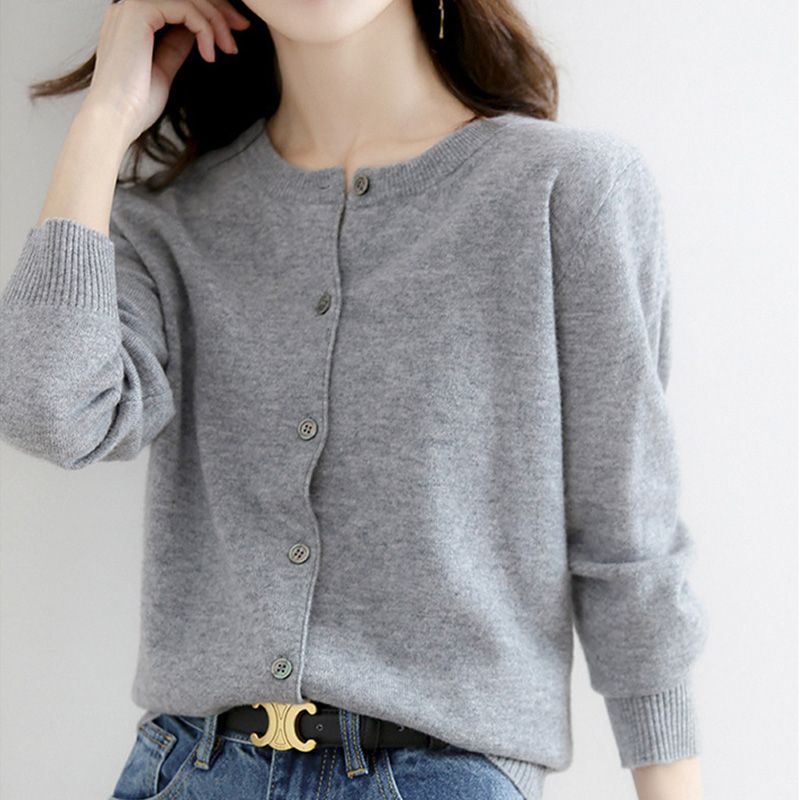 1 * Damska dzianinowa koszula z okrągłym dekoltem i guzikami