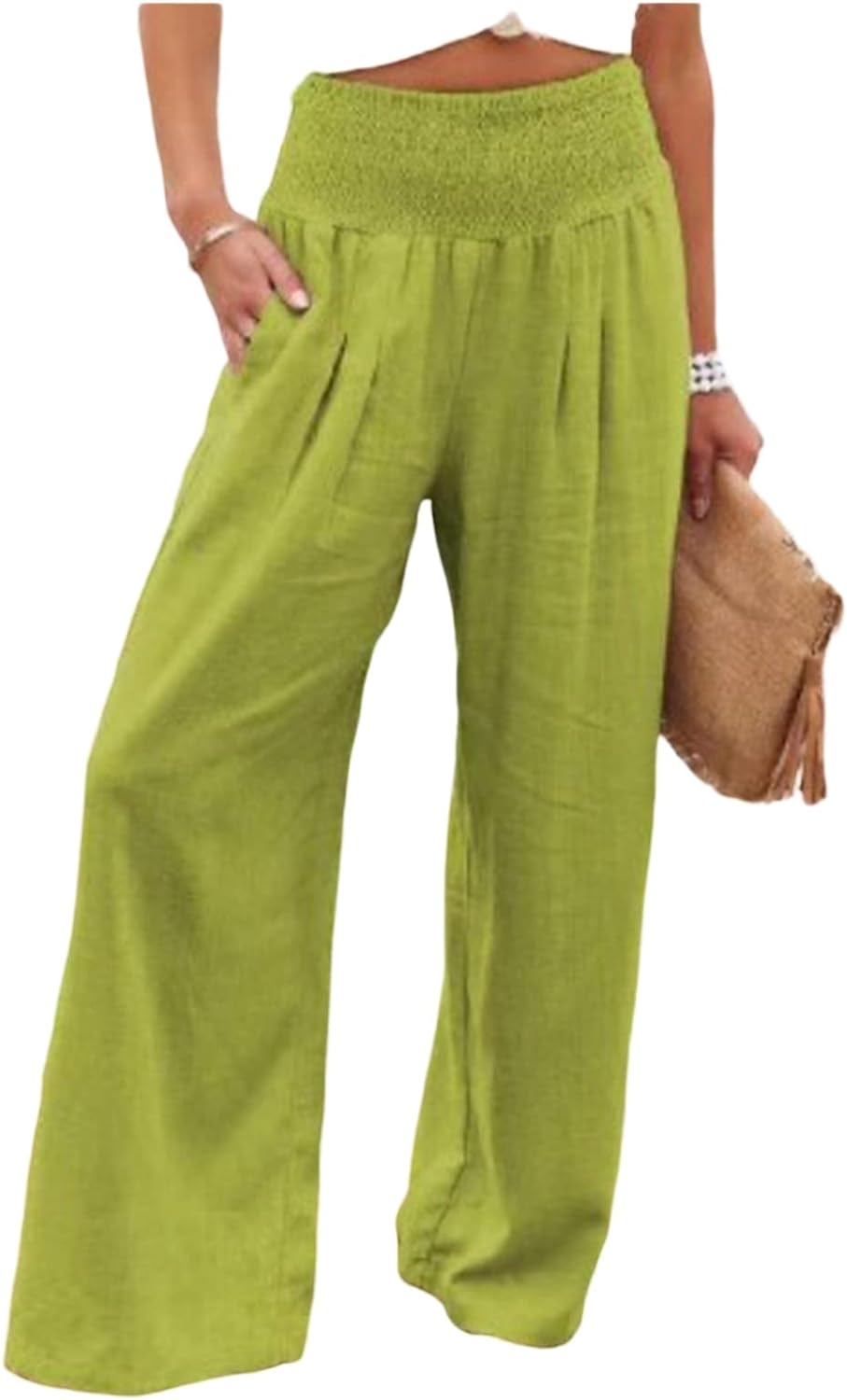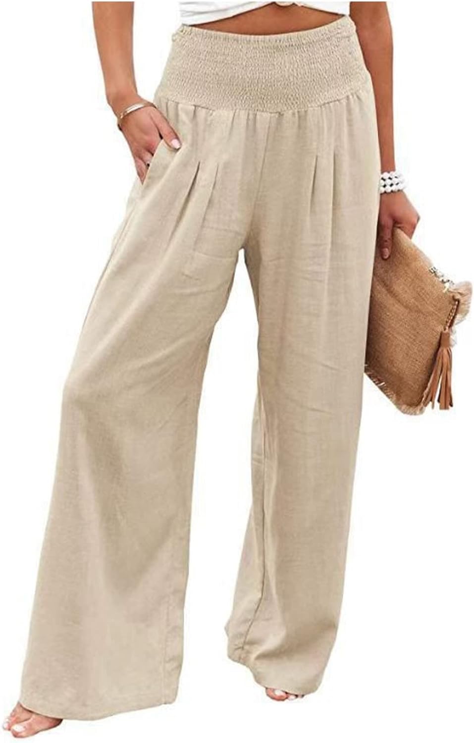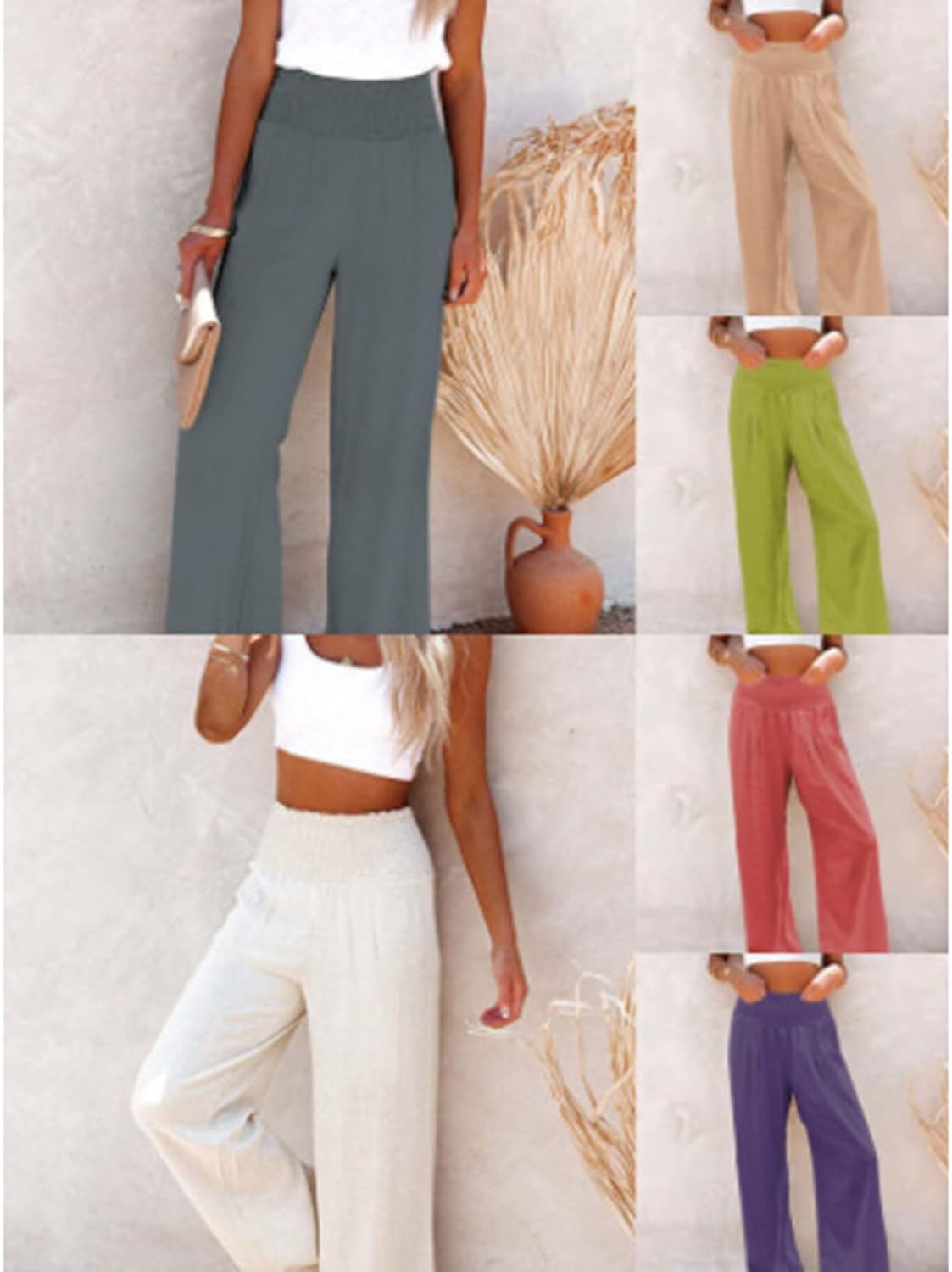 Damskie spodni bawełniane lniane szerokopasmowe spodnie Capri Letnie podwyższone spodnie przycięte spodnie