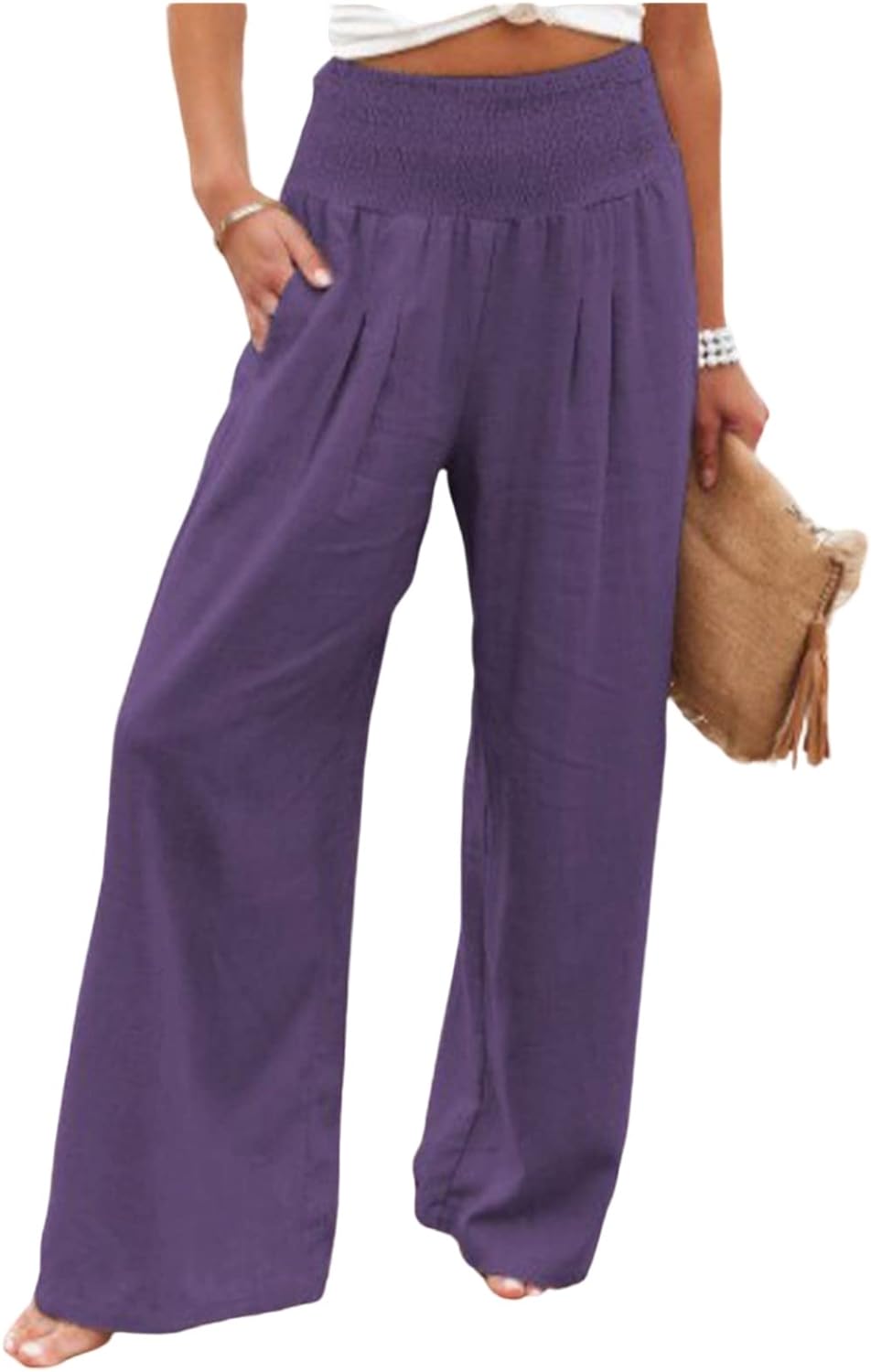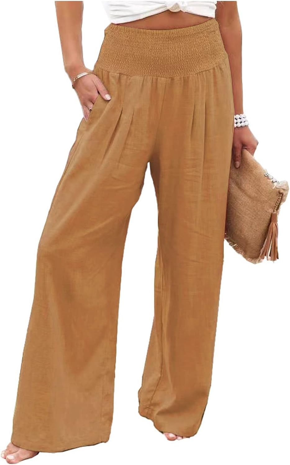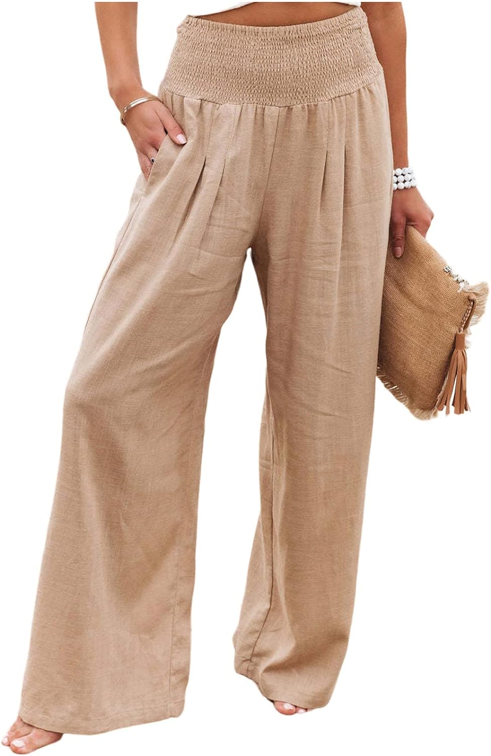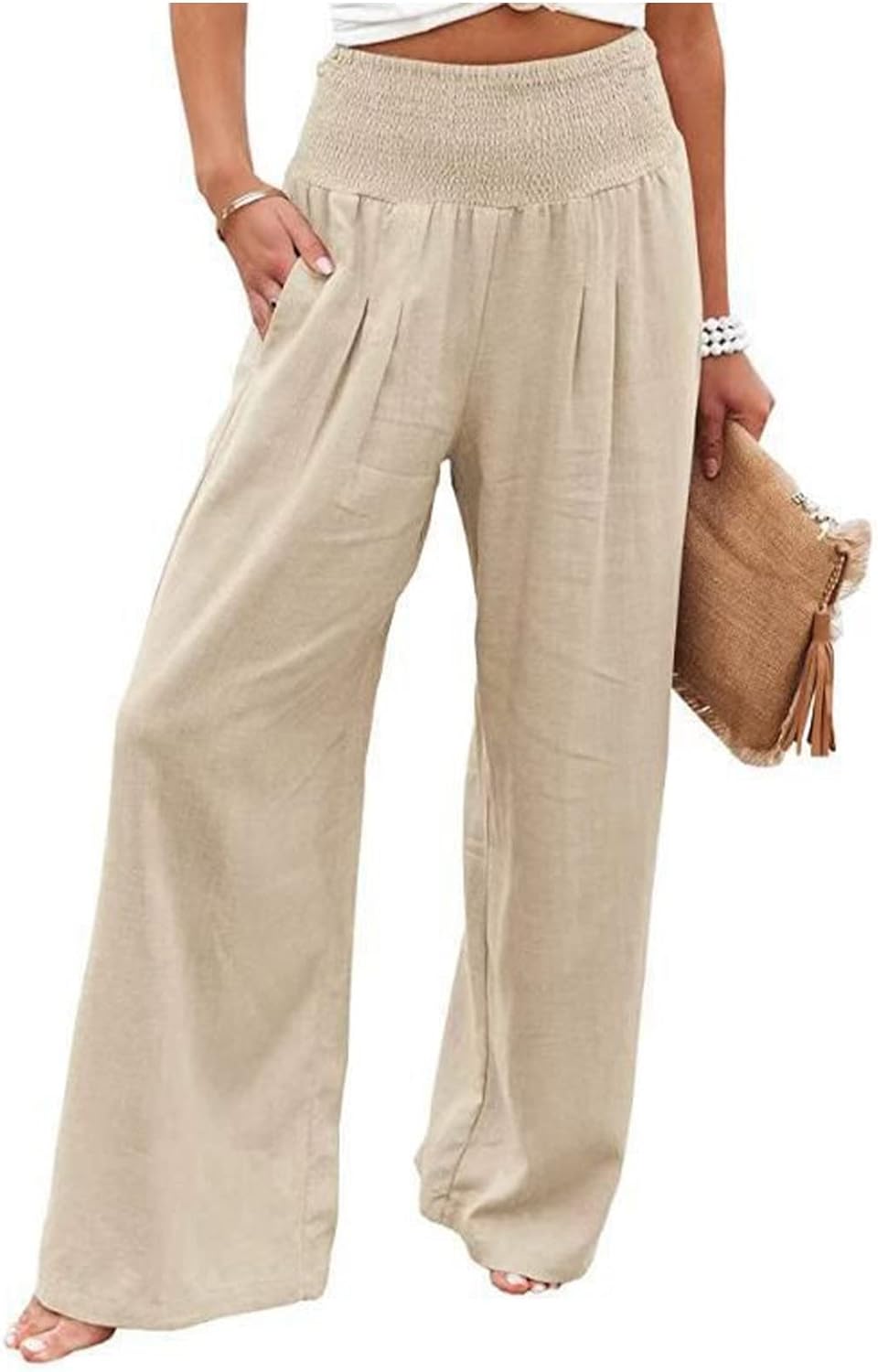 Damskie spodni bawełniane lniane szerokopasmowe spodnie Capri Letnie podwyższone spodnie przycięte spodnie