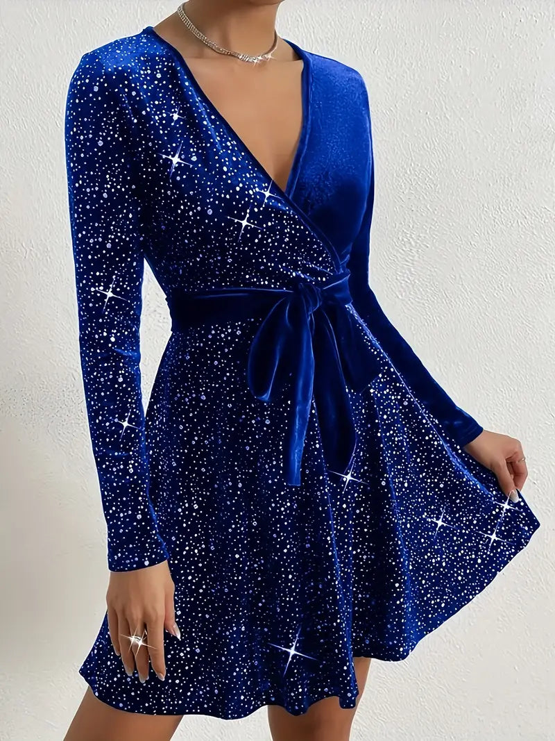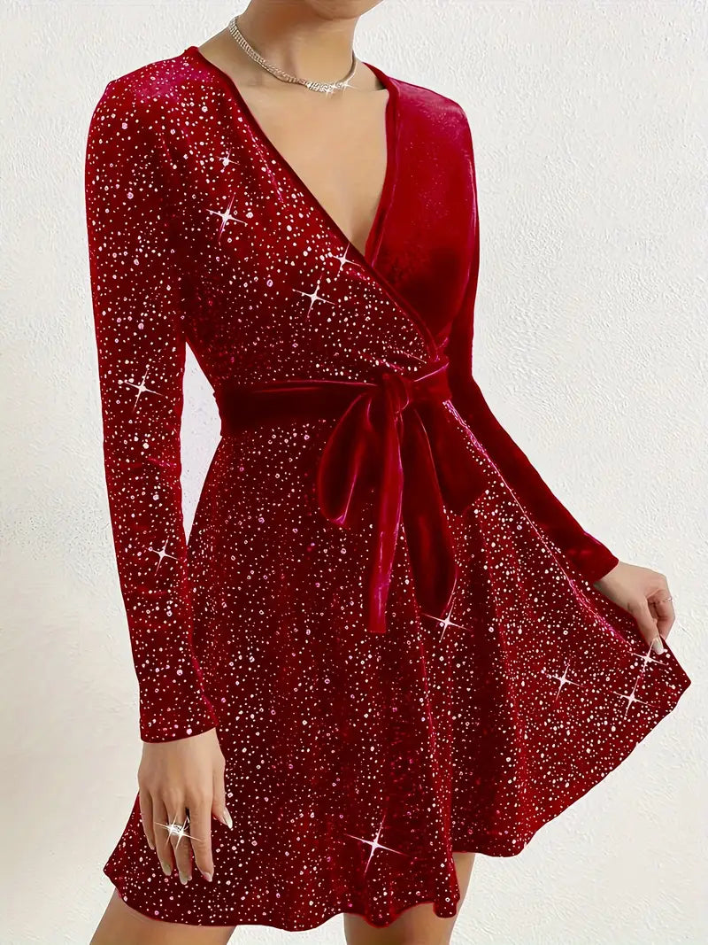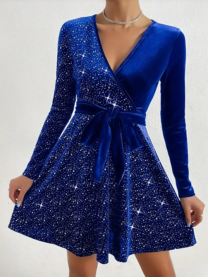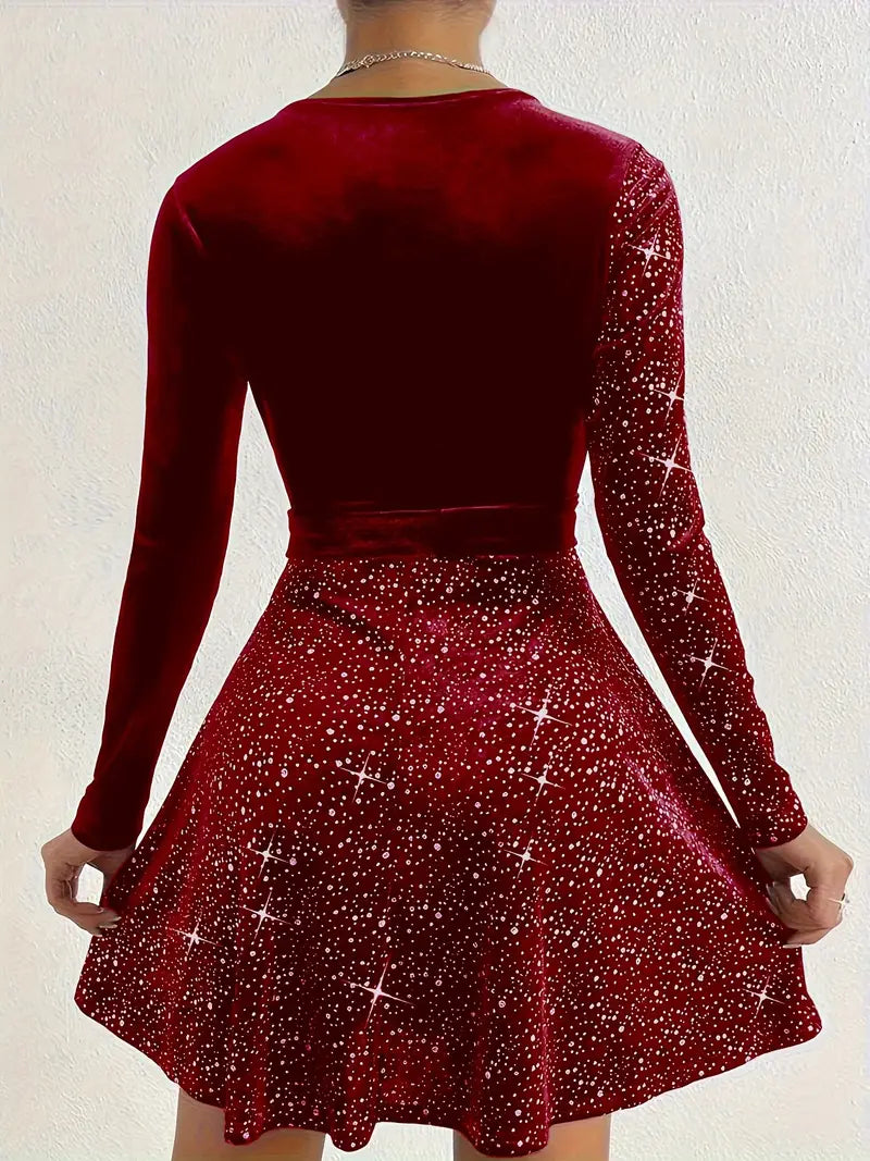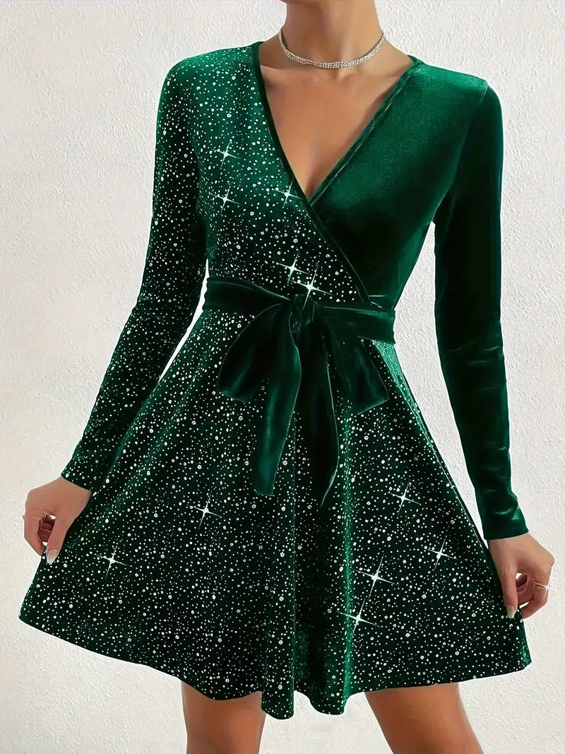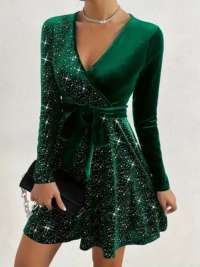 Increase quantity for Elegancka aksamitna sukienka z dekoltem w serek