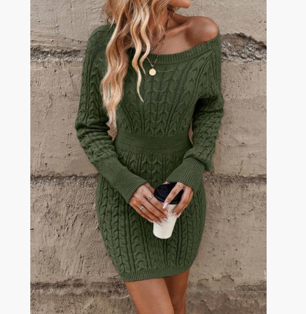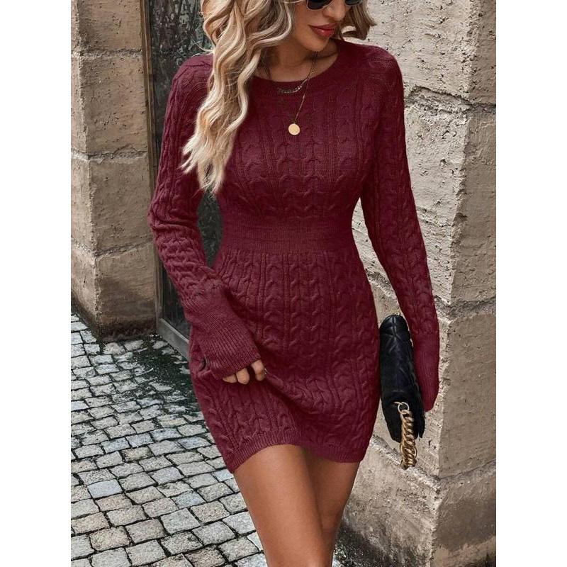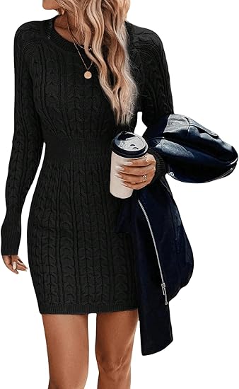 🖤🍂UWIELBIAM TĘ damską, gładką, wokół szyi , obcisłą, dzianinową sukienkę sweterkową, o eleganckim i swobodnym kroju!!! 💃 Ta damska sukienka sweterkowa ma okrągły dekolt i gładki wzór . Jest to fason typu bodycon z długimi rękawami, idealny do codziennego noszenia na świeżym powietrzu.