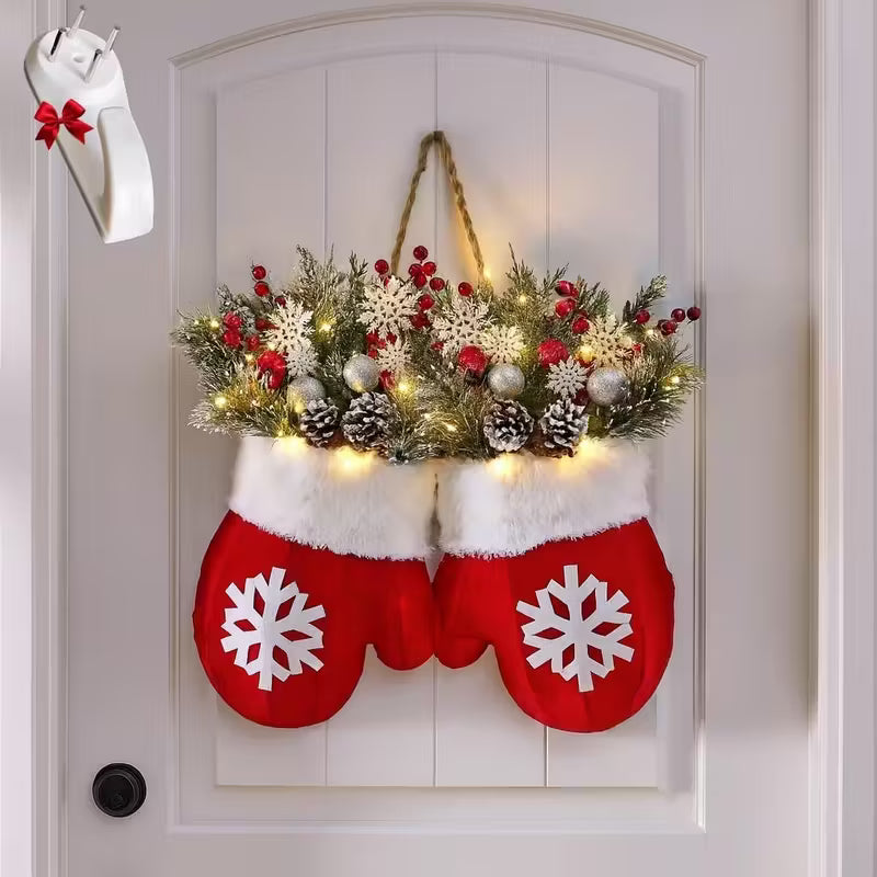 Lokalny magazynBłyszczący wieniec świąteczny z 120 diodami LED - sztuczne gałęzie sosny, czerwone jagody i mroźne szyszki sosny, dekoracja drzwi do wnętrz i na zewnątrz na choinki