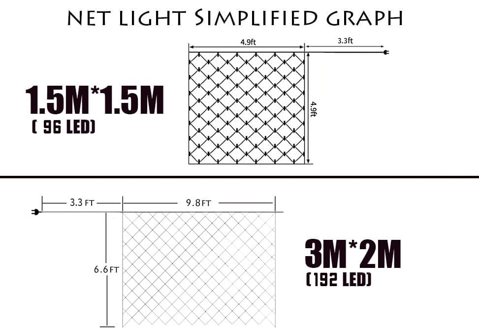 8 trybów z funkcją pamięci: ta siatkowa lampka świąteczna ma 8 różnych trybów. Kombinacja, Fala, Sekwencyjna, Slo-glo, Chase, Powolny zanik, Miganie i Stały. Adapter światła sieciowego to wbudowany układ pamięci, który zapisuje ostatnie ustawienie trybu i nie ma potrzeby codziennego resetowania trybu