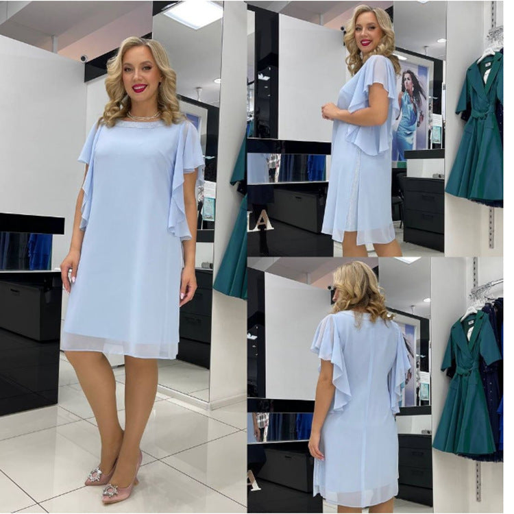 Nowy letni styl - sukienka z okrągłym dekoltem i krótkim rękawem w jednolitym kolorze💎