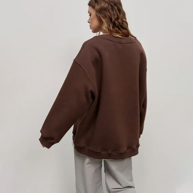 Paczka zawiera: 1 * Obszerna bluza z okrągłym dekoltem w jednolitym kolorze