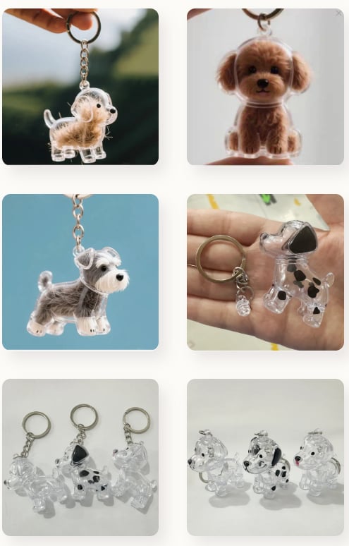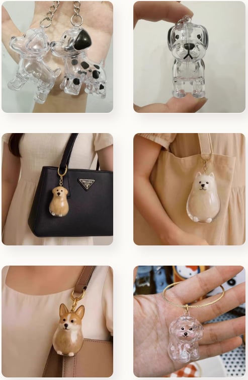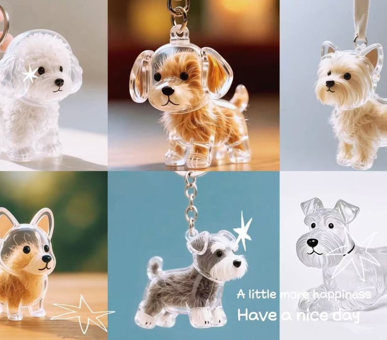 Wybieraj spośród różnych ras psów, takich jak Pomeranian, Westie lub Schnauder. Każdy urok jest starannie wykonany, aby być tak uroczym i ekspresyjnym jak twój prawdziwy szczeniak.