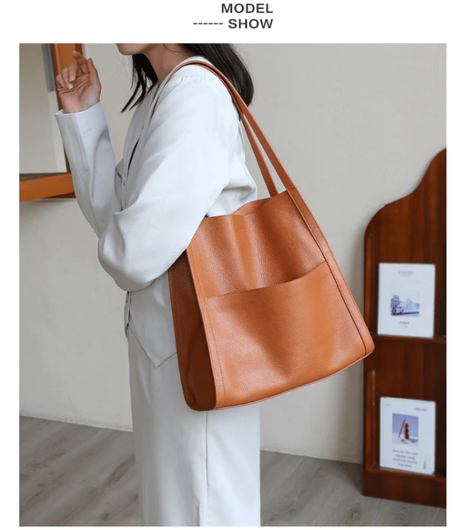 Skórzana torba na ramię jest stylowa i wszechstronna, wykonana w 100% z miękkiej drugiej warstwy skóry bydlęcej i PU. Posiada 4 kieszenie, pojemną komorę główną na tablety i inne przedmioty codziennego użytku. Dzięki niemu zachowaj modę i porządek.