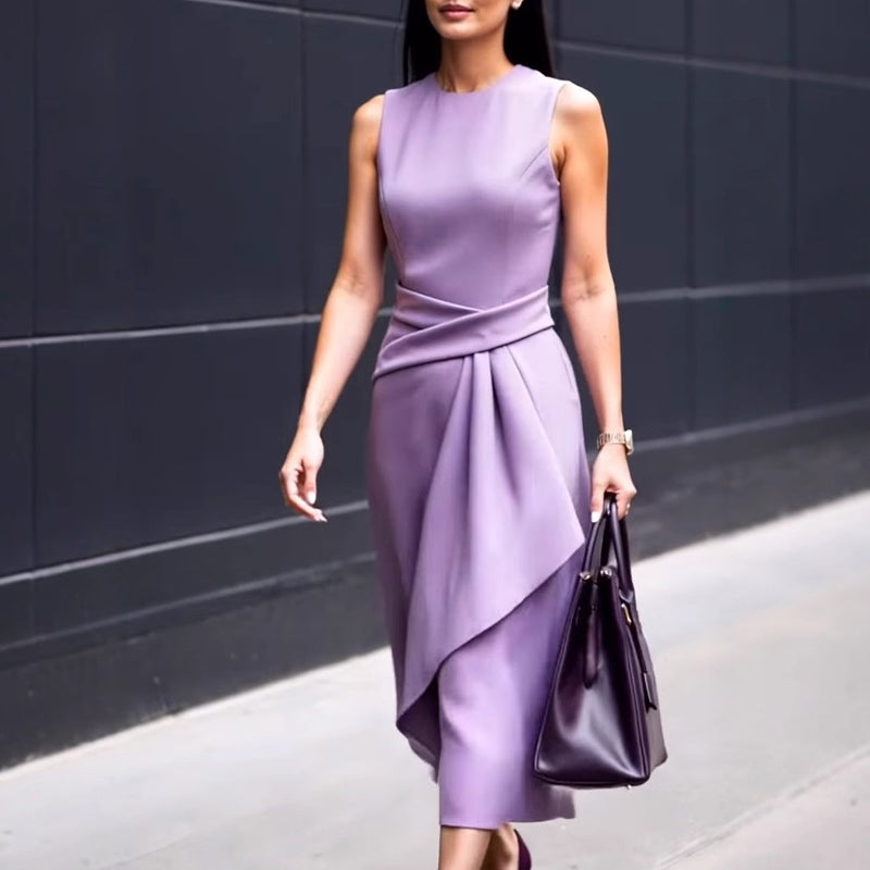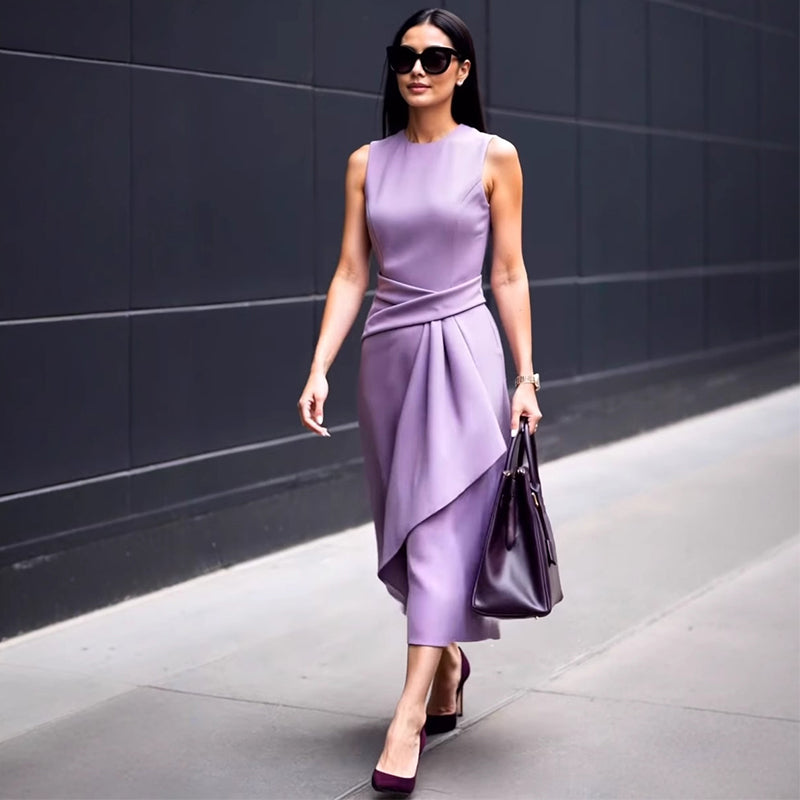 Zaprojektowana w neutralnych tonach i wszechstronnych proporcjach, ta sukienka płynie od profesjonalnej ramy (powiązanej z blezerem) do wydarzeń wieczornych (związanych z topem). Długość podłogi doskonale równoważy profesjonalizm z elegancją żeńską, odpowiednią na wiele okazji bez dodatkowych zmian.