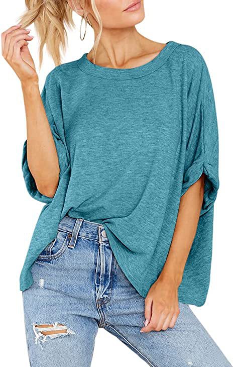 Elegancki krój, koszulka z rękawem 5/4, okrągły dekolt, jednolity kolor, długość do bioder, luźny dół doskonale zakrywa brzuszek, idealna dla kobiet.