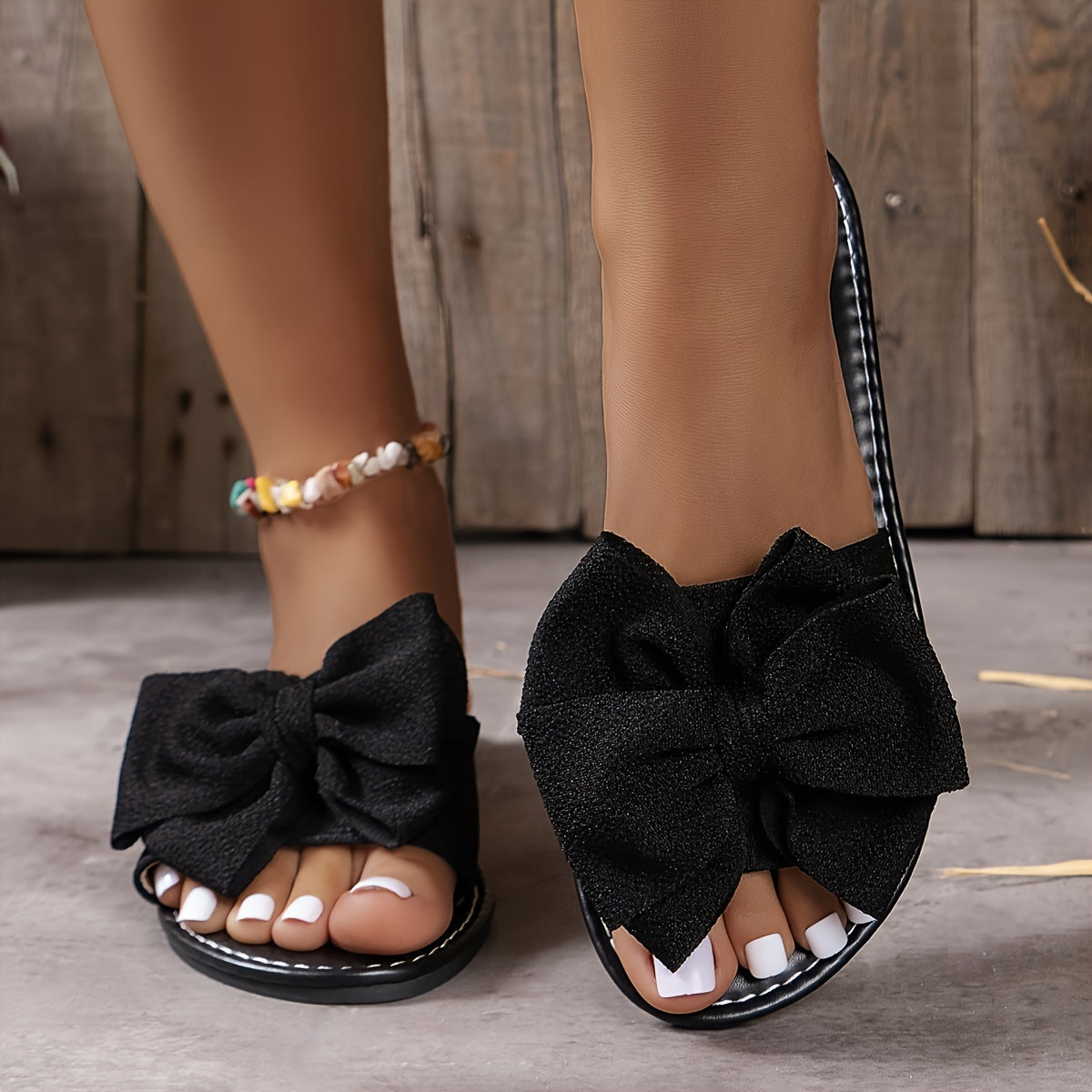 Increase quantity for Damskie sandały wsuwane z kokardką, codzienne płaskie letnie buty z odkrytymi palcami, lekkie buty plażowe