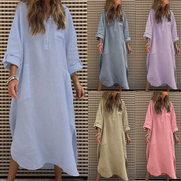 Pakiet obejmuje: 1 * damski stały stały kolor sukienki z długim rękawem z kieszeniami