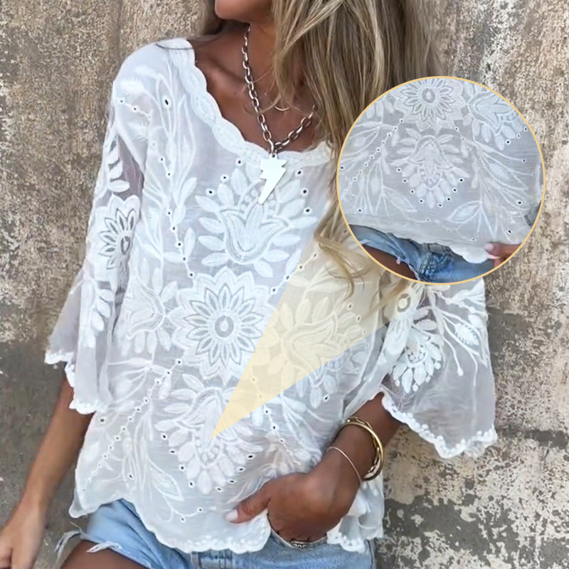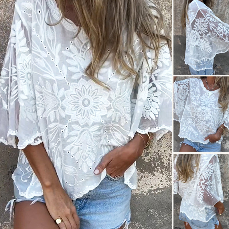 Pakiet obejmuje: 1 × boho elegancka bluzka w półprzezroczystej koronce z haftem