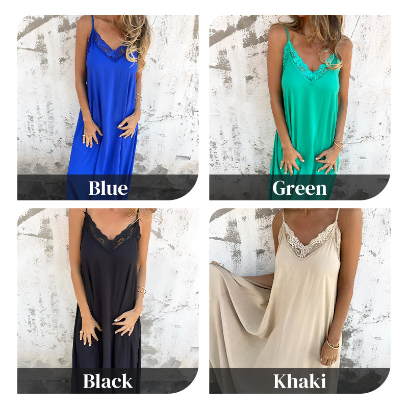 Increase quantity for 🌸SPRING Specials💐 Eleganckie koronkowe wykończenie damskie Sukienka Spaghetti Spaghetti Sukienka Maxi