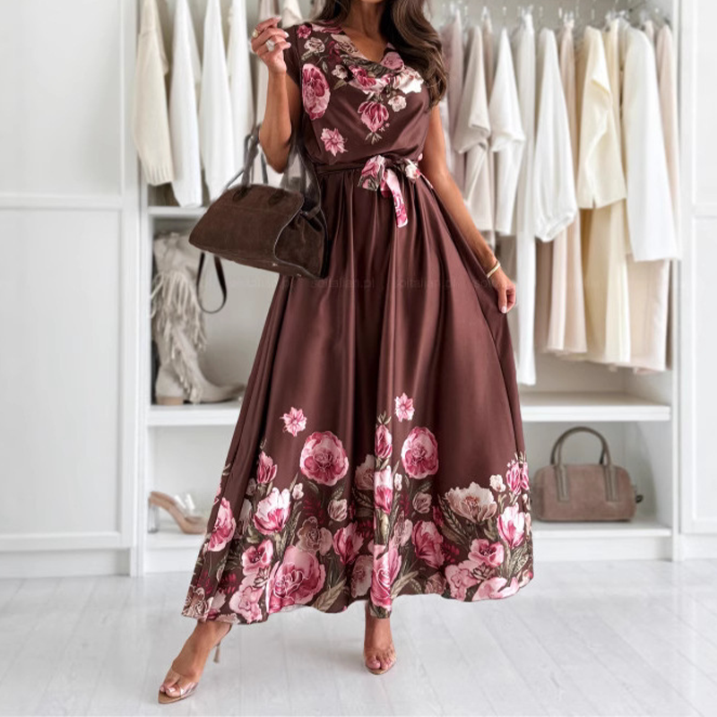 Firma dostarczająca: 1 × elegancka sukienka z drukowaniem z V-ringiem dla kobiet