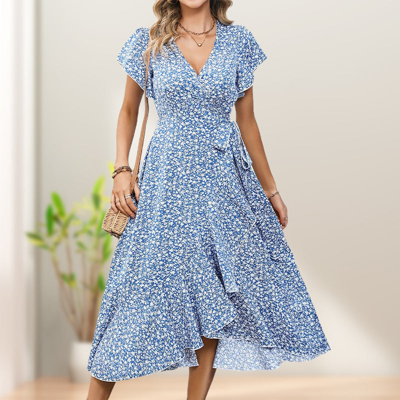 Dołączono: 1 * Kobietowe lato w krawatie paszportowe gardło kwiatowe sukienki