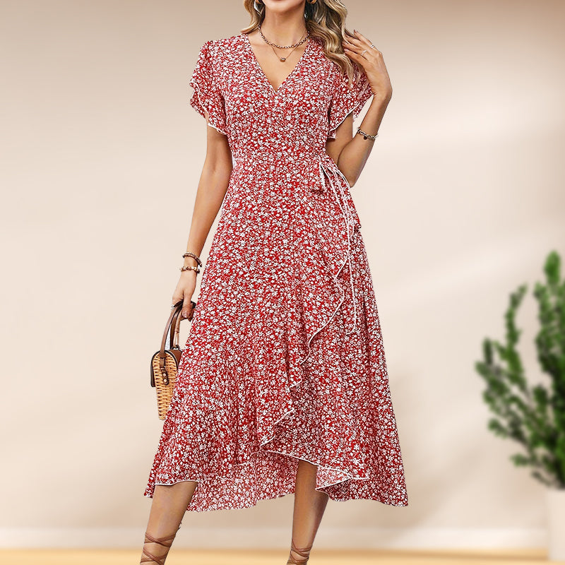 Clea Flower Print - kompleksowo zaprojektowany kwiatowy wzór, który dekoruje tę sukienkę, to piękne połączenie żywych odcieni i ponadczasowej elegancji i służy jako idealny charakterystyczny kawałek, który wprowadza do sukienki koloru.