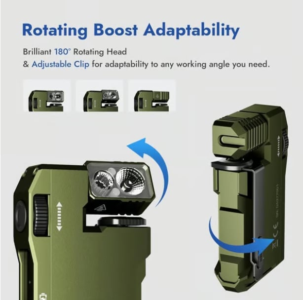 Elastyczny i wszechstronny – głowica obrotowa o 180° i regulowany klips zapewniający wygodę bez użycia rąk.